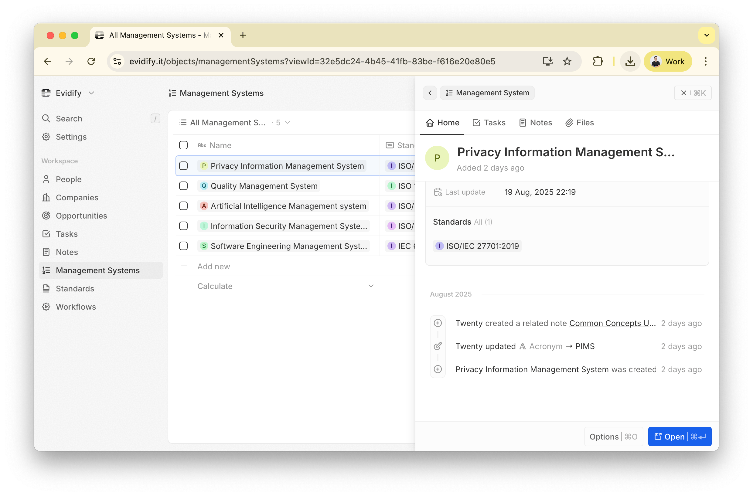 Evidify integrates with your existing ISO frameworks (9001, 13485, 27001), embedding AI governance directly into your daily operations and future-proofing your compliance.