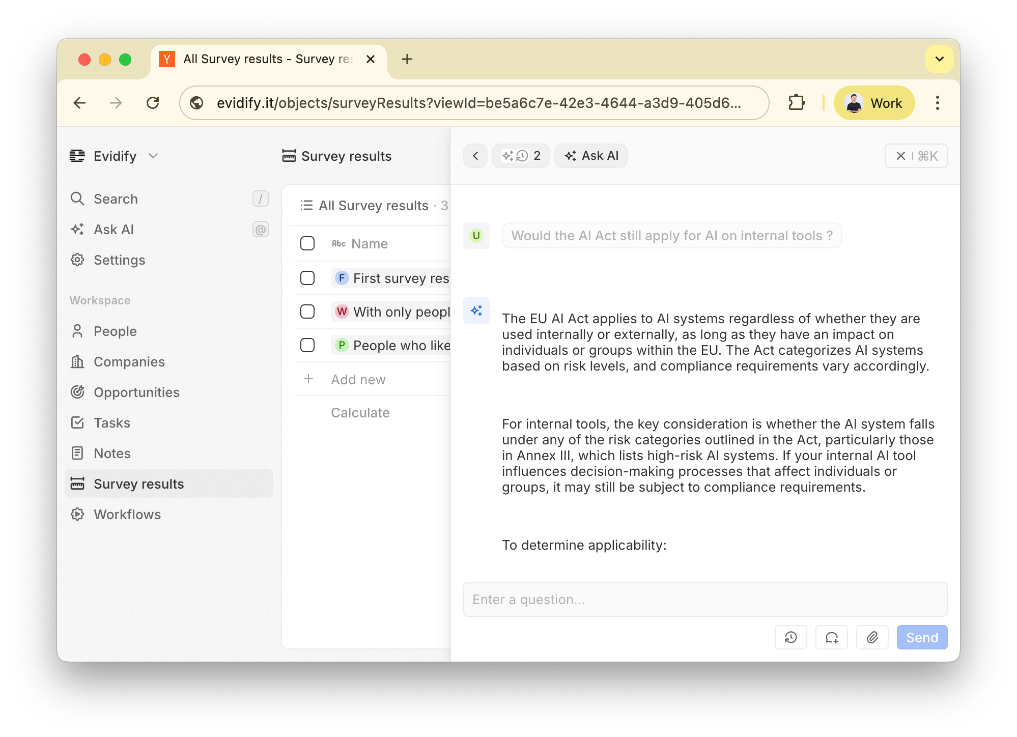 Holmes, our dedicated AI assistant. Holmes provides detailed, context-aware answers and continuous support, acting as an expert guide for every user. Whether clarifying a specific EU AI Act requirement or navigating a step in our guided workflows, Holmes ensures each team member receives the precise level of detail they need, exactly when they need it.
