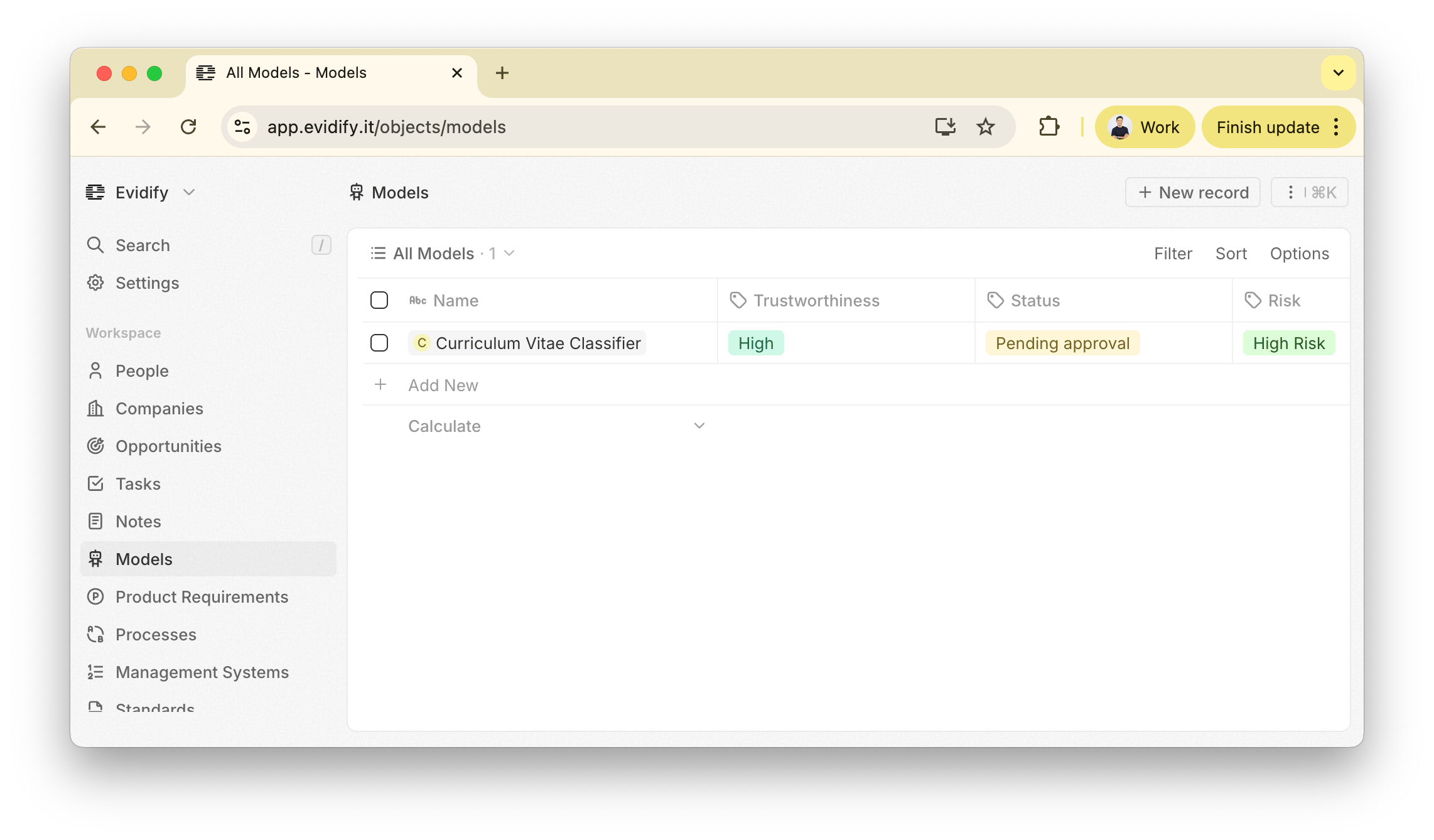 Use Evidify's dynamic AI registry to build an inventory of your AI use cases and systems.
